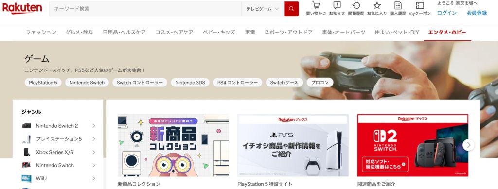 楽天市場も幅広い種類のゲームが買える通販サイト。